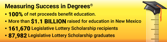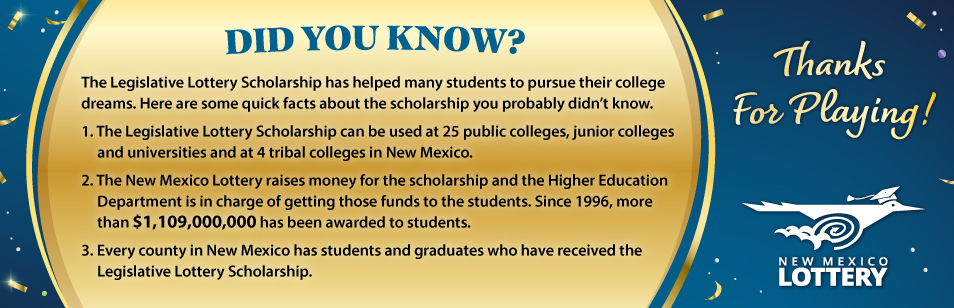 When New Mexico Plays, New Mexico Wins!® Part of every dollar spent on Lottery tickets benefits New Mexico’s future. It opens the door to new generations of New Mexicans to obtain a college education which otherwise might not have been possible. That helps make New Mexico a better place to live.
